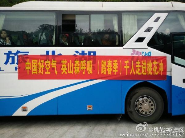 由县旅游发展委员会、桃花冲风景区主办,中南国旅承办的“(踏春季)千人走进桃花冲”的旅游活动,首批460名游人4月15日走进了桃花冲,游览了景区的十里桃花溪、吴楚古长城。4月16日,来自武汉、黄石、鄂州、黄州等地的1600余名游人来桃花冲游览观光,此次活动将推动景区旅游高 峰的到来。